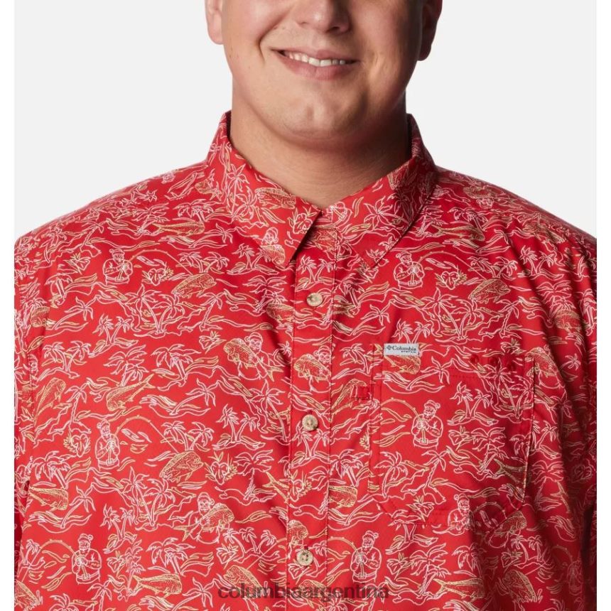 Columbia Camisa columbia red spark merry mahi print pfg super slack tide camp para hombre grande DV66DP1057 estampado de merry mahi de chispa roja