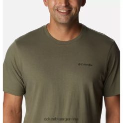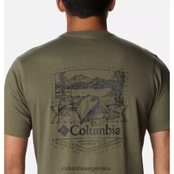 Columbia Camiseta con gráfico en la espalda del río Rockaway para hombre, gráfico de insignia Columbia Stone Green/Lakeside DV66DP10803 verde
