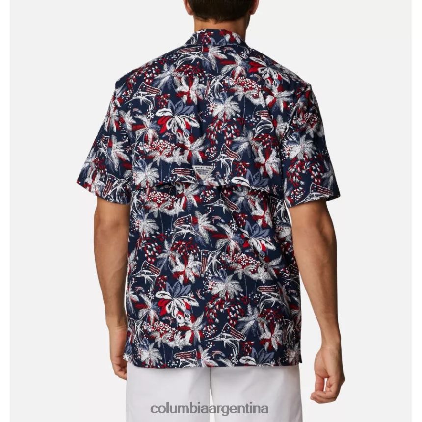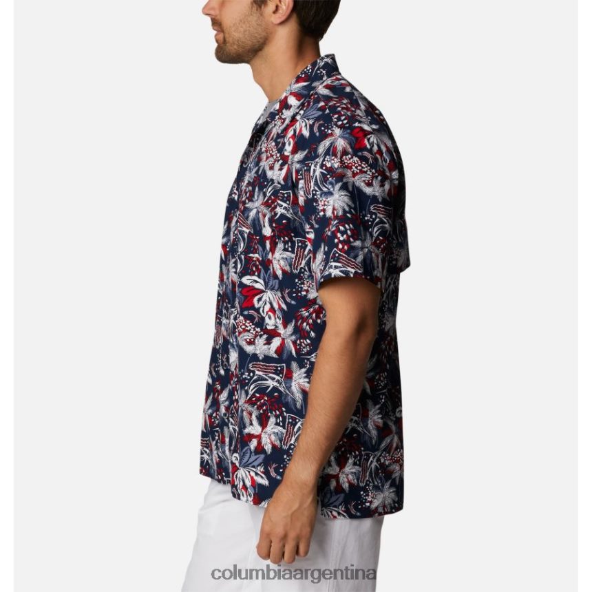 agrega esta camisa estampada con botones y abertura trasera oculta a tu guardarropa para el clima cálido.