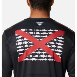 Columbia negro/alabama fish columbia camisa de manga larga pfg terminal tackle fish flag para hombre alta DV66DP2261 pez negro de alabama