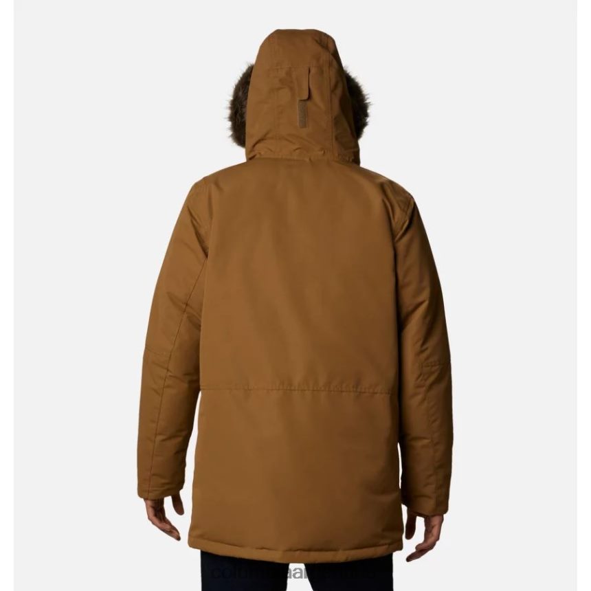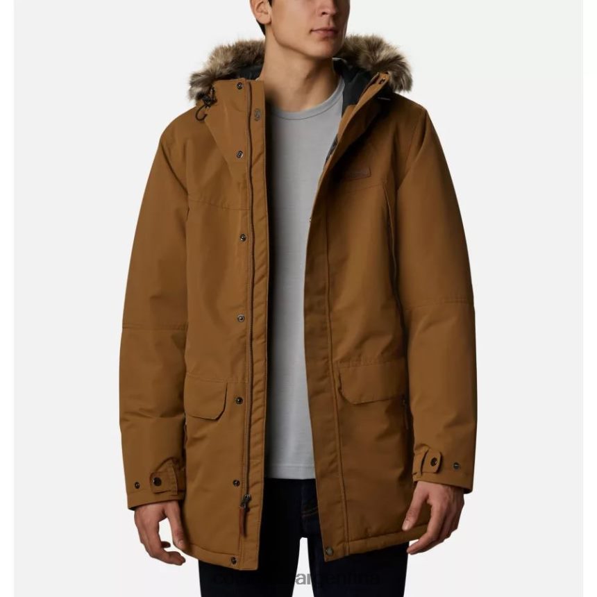 con una capucha ajustable con borde de piel sintética, cremallera bolsillos en el pecho, para las manos y de seguridad, y una silueta larga para mayor cobertura.