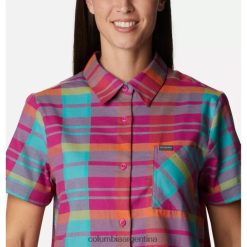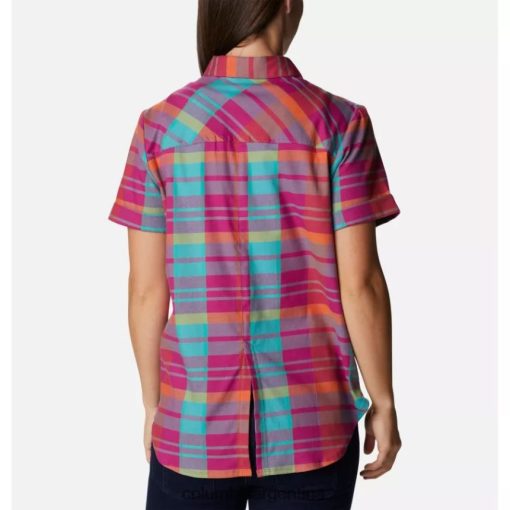 Columbia Camisa Columbia de manga corta elástica informal en cualquier momento para mujer Madras fucsia salvaje DV66DP8438 madrás fucsia salvaje