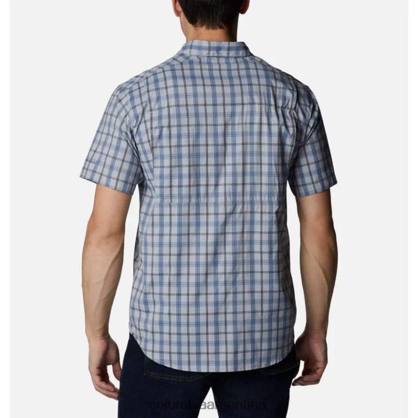 la silueta clásica de manga corta mantiene un atractivo clásico gracias al patrón de cuadros y al corte con botones.