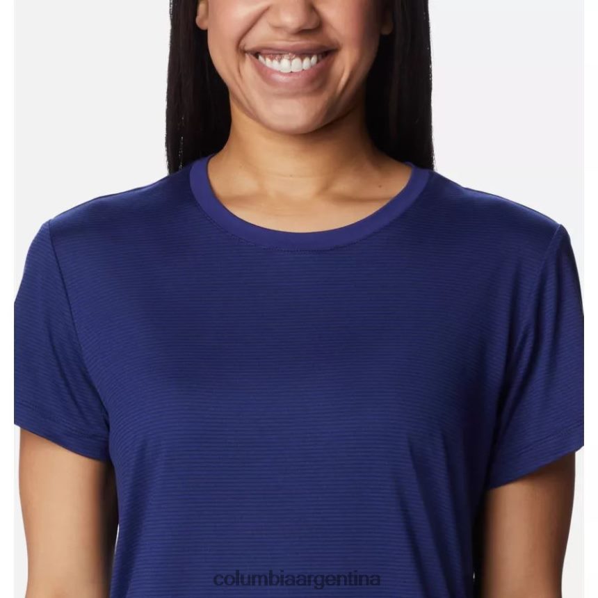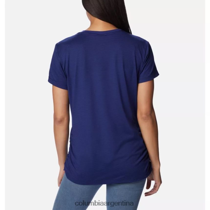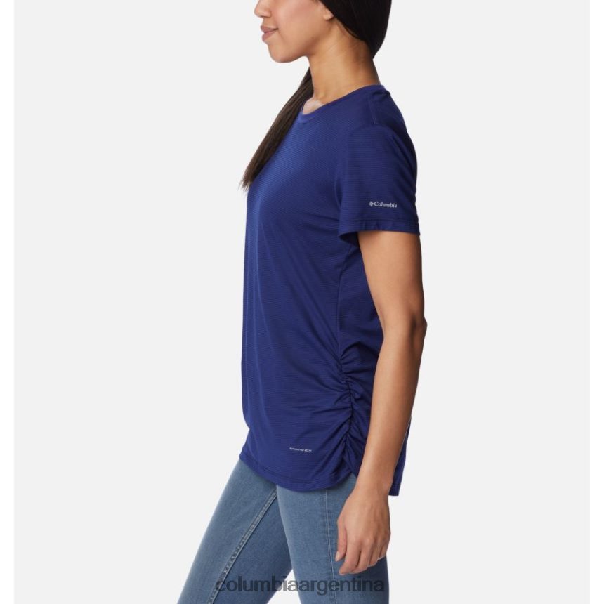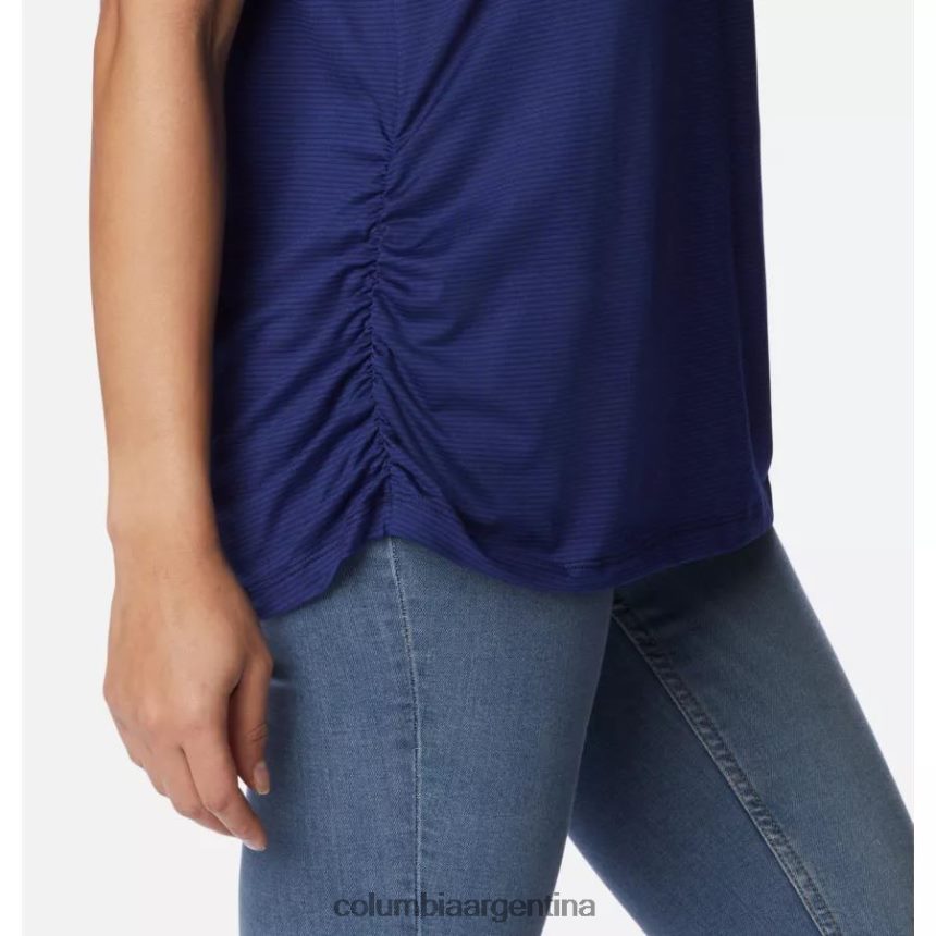 La tela suave, los favorecedores fruncidos en los costados y las sutiles rayas realzan esta camiseta lista para el sendero.