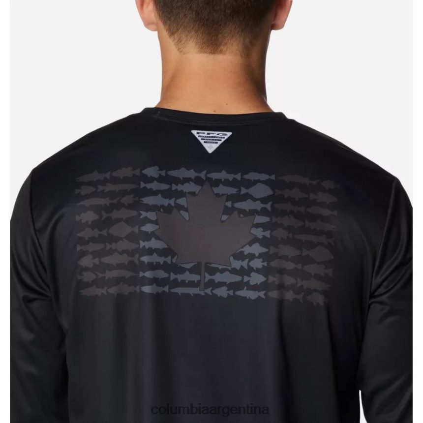 esta camiseta ligera de manga larga de alto rendimiento está diseñada para brindar comodidad dentro o fuera del agua con protección solar UPF 50 incorporada, tejido avanzado que absorbe la humedad y un llamativo diseño estampado de bandera de pez. .