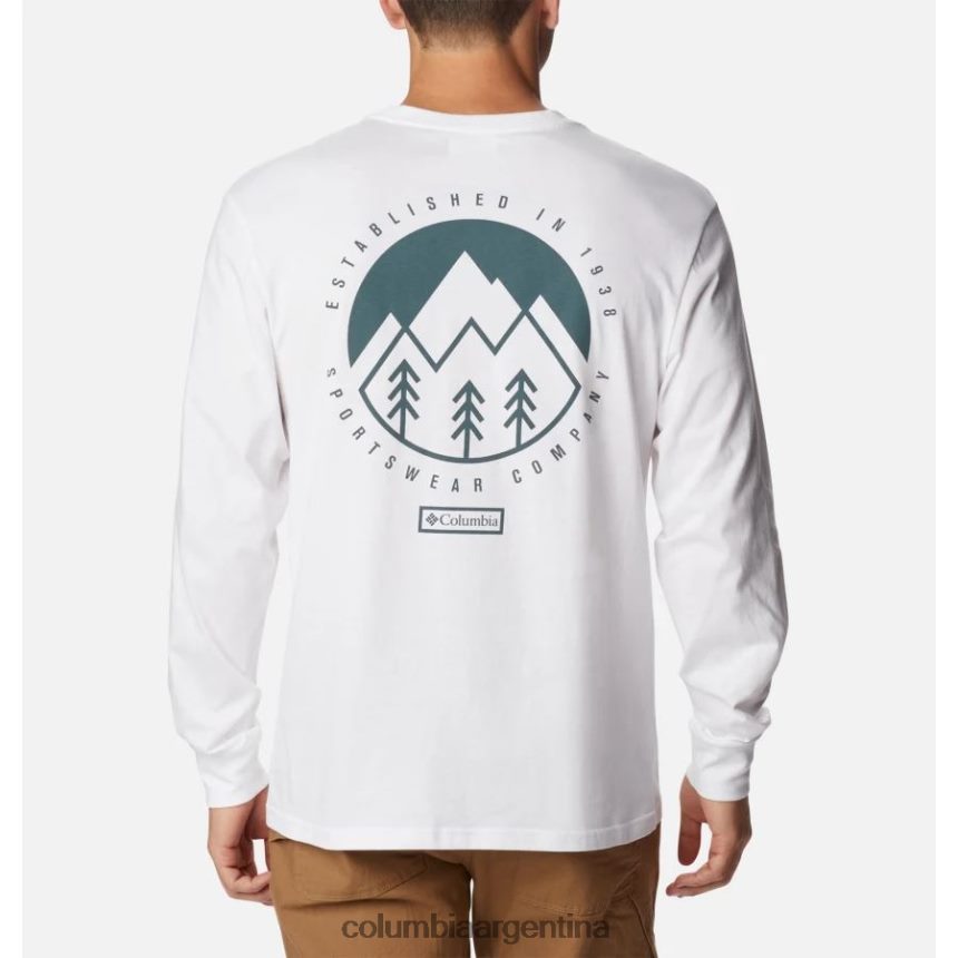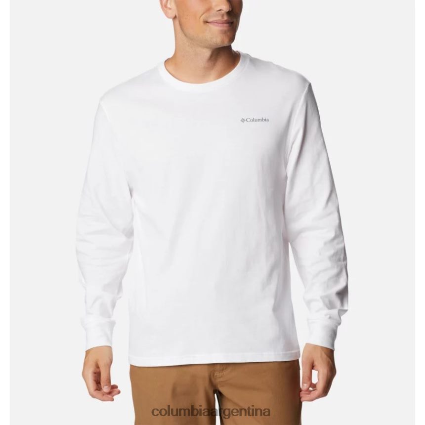 esta camisa de manga larga, 100 % algodón, es perfecta debajo de una camiseta, pero no querrás cubrir el gráfico clásico de Columbia para mostrar tu amor por el aire libre. p>