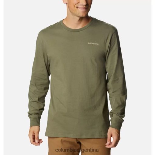 esta camisa de manga larga, 100 % algodón, es perfecta debajo de una camiseta, pero no querrás cubrir el gráfico clásico de Columbia para mostrar tu amor por el aire libre. p>