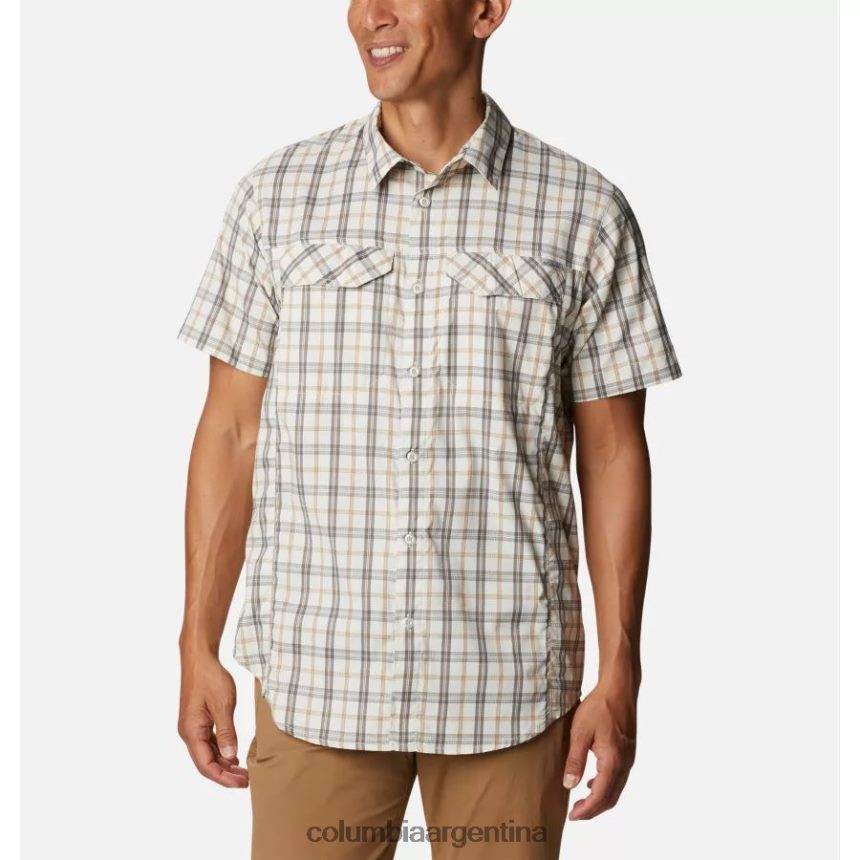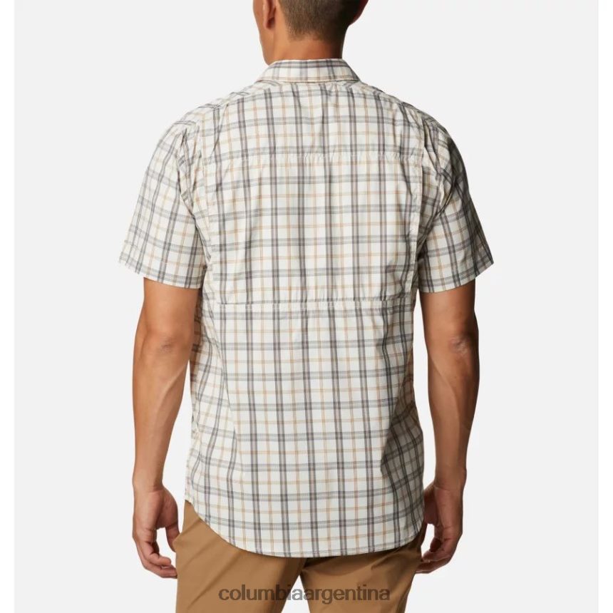 la silueta clásica de manga corta mantiene un atractivo clásico gracias al patrón de cuadros y al corte con botones.