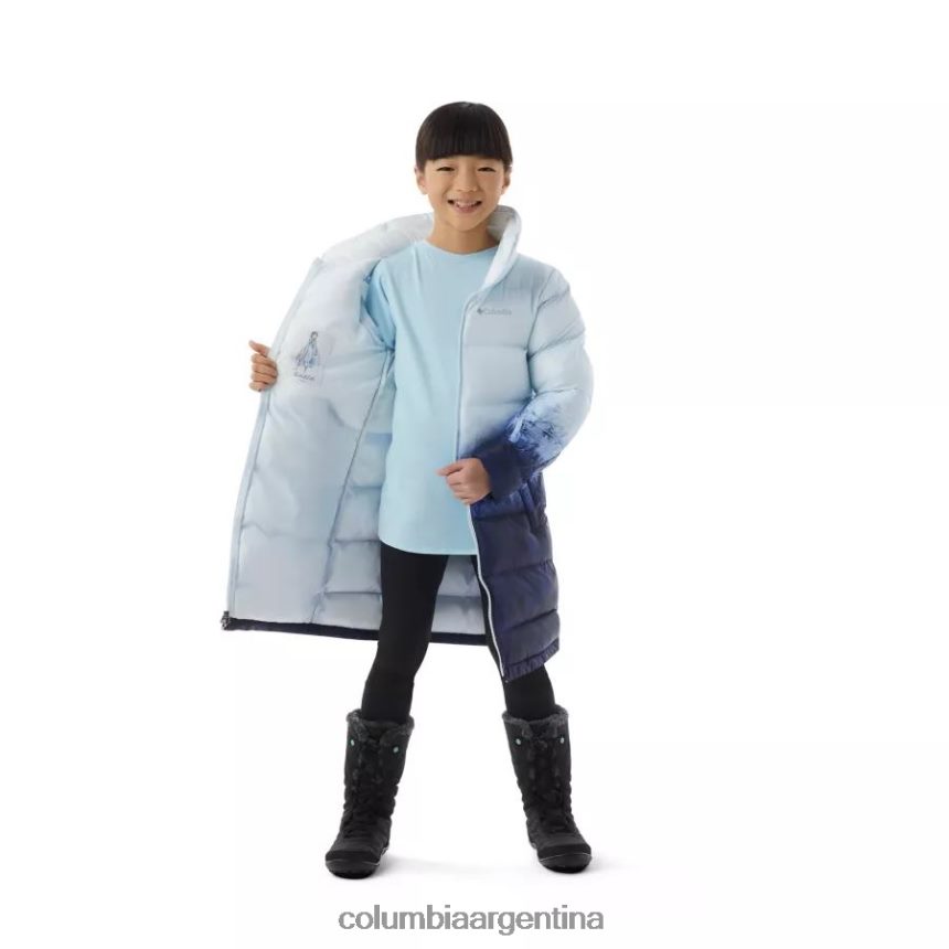 siguiendo el ejemplo de elsa de disney frozen 2, esta chaqueta acolchada ultracálida hará que cualquier niña se sienta como una reina en viajes épicos de invierno. En el interior hay una etiqueta bordada con el arte original del personaje, mientras que un estampado degradado de un azul helado a intenso presenta símbolos y patrones fractales. Los bolsillos tostados están forrados con un tejido polar ultrasuave y una cremallera bidireccional proporciona una cobertura total.