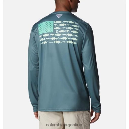 esta camiseta de manga larga, liviana y de alto rendimiento, está diseñada para brindar comodidad dentro o fuera del agua con protección solar UPF 50 incorporada, tela avanzada que absorbe la humedad y una llamativo diseño con estampado de bandera de pez.