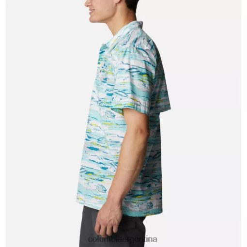 agrega esta camisa estampada con botones y abertura trasera oculta a tu guardarropa para el clima cálido.
