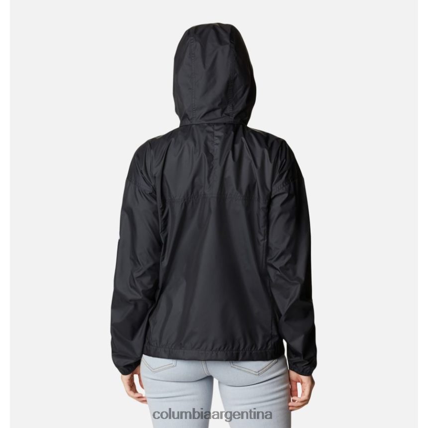 este cortavientos ofrece una capucha con cordón ajustable y puños elásticos para sellar el viento.