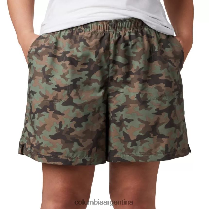 Columbia Pantalones cortos estampados Sandy River II para mujer, talla grande, estampado de camuflaje ciprés, Columbia DV66DP2356 estampado de camuflaje de ciprés