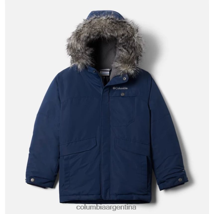 capucha forrada con sherpa con ribete de piel sintética extraíble, puños ajustables, bolsillos para las manos de doble entrada y cola caída. .