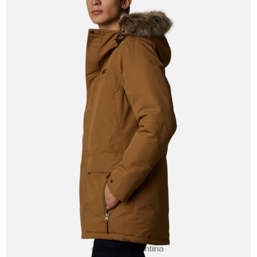 con una capucha ajustable con borde de piel sintética, cremallera bolsillos en el pecho, para las manos y de seguridad, y una silueta larga para mayor cobertura.