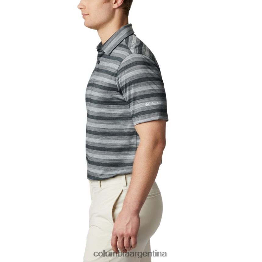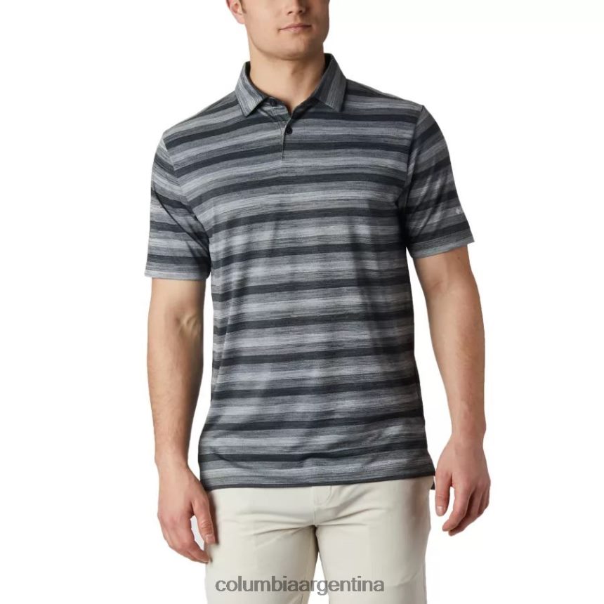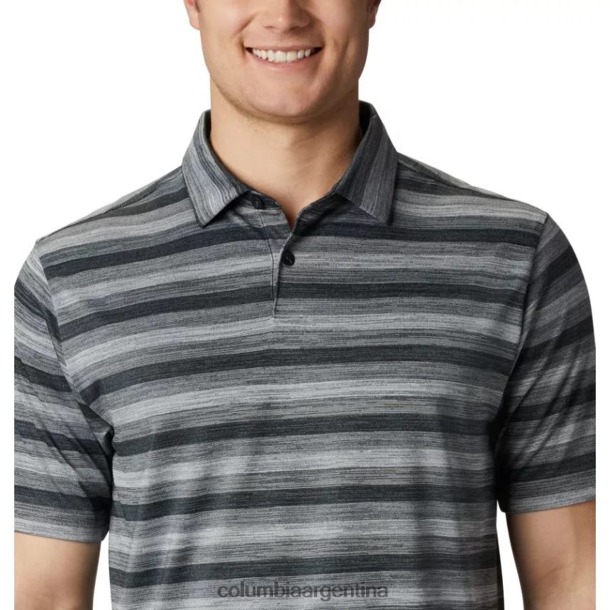 luce elegante dondequiera que vayas con este polo con botones a rayas de dos tonos y tirantes cosidos en el cuello.
